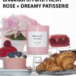 With one strike of the match, transport your senses to the city of love where breakfast is served with freshly-baked croissants, crème brulée, blackberry jam + vanilla rose custard.